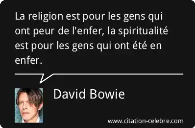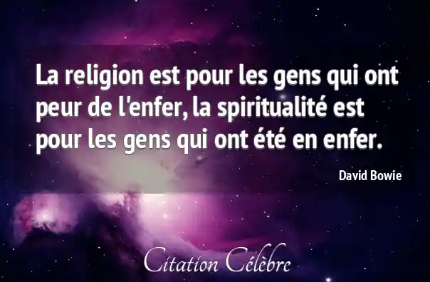 La religion est pour les gens qui ont peur de l'enfer, la spiritualité est pour les gens qui ont été en enfer.