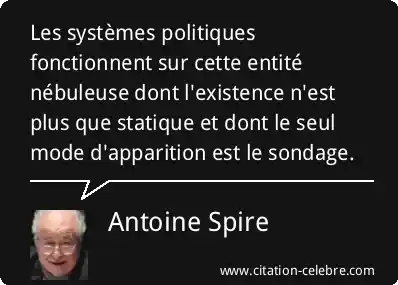 Les systèmes politiques fonctionnent sur cette entité nébuleuse dont l'existence n'est plus que statique et dont le seul mode d'apparition est le sondage.