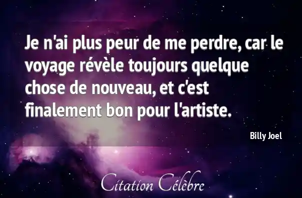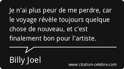 Je n'ai plus peur de me perdre, car le voyage révèle toujours quelque chose de nouveau, et c'est finalement bon pour l'artiste.
