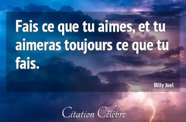 Fais ce que tu aimes, et tu aimeras toujours ce que tu fais.