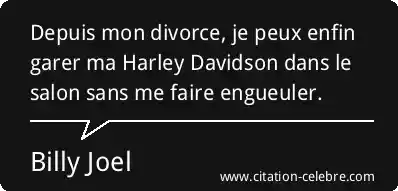 Depuis mon divorce, je peux enfin garer ma Harley Davidson dans le salon sans me faire engueuler.