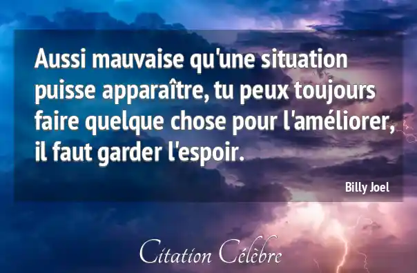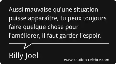 Aussi mauvaise qu'une situation puisse apparaître, tu peux toujours faire quelque chose pour l'améliorer, il faut garder l'espoir.