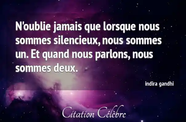 N'oublie jamais que lorsque nous sommes silencieux, nous sommes un. Et quand nous parlons, nous sommes deux.