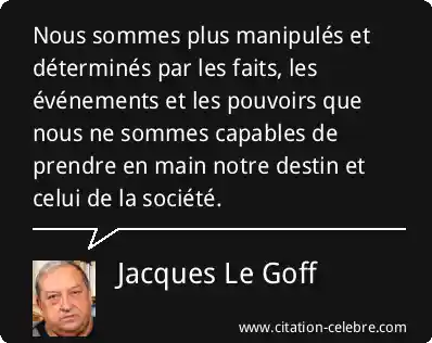 Nous sommes plus manipulés et déterminés par les faits, les événements et les pouvoirs que nous ne sommes capables de prendre en main notre destin et celui de la société.