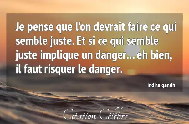Je pense que l'on devrait faire ce qui semble juste. Et si ce qui semble juste implique un danger... eh bien, il faut risquer le danger.