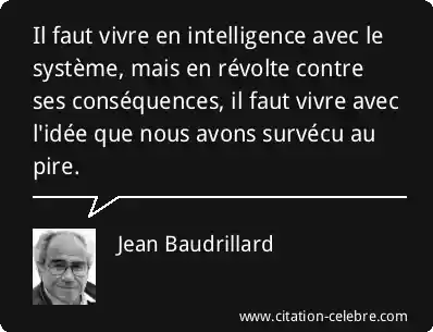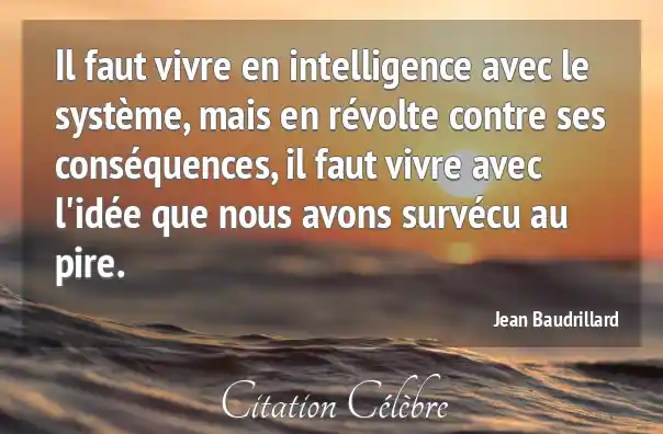 Il faut vivre en intelligence avec le système, mais en révolte contre ses conséquences, il faut vivre avec l'idée que nous avons survécu au pire.
