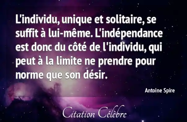 L'individu, unique et solitaire, se suffit à lui-même. L'indépendance est donc du côté de l'individu, qui peut à la limite ne prendre pour norme que son désir.
