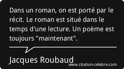 Dans un roman, on est porté par le récit. Le roman est situé dans le temps d'une lecture. Un poème est toujours "maintenant".