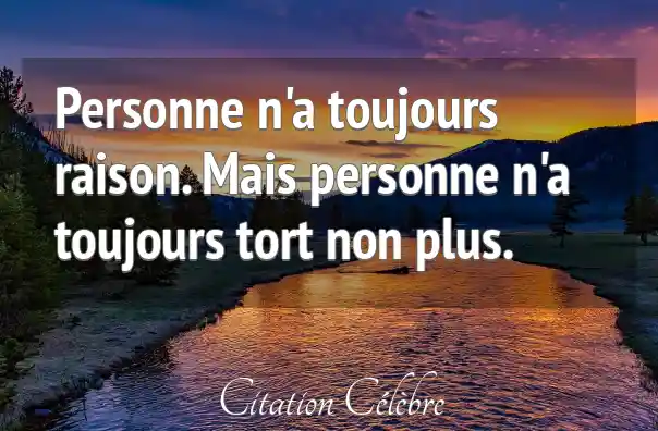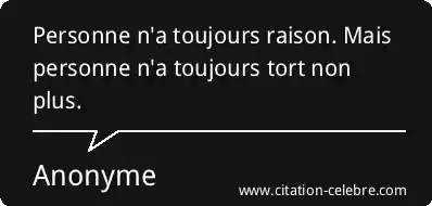 Personne n'a toujours raison. Mais personne n'a toujours tort non plus.