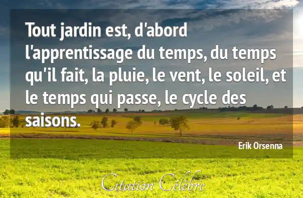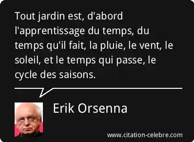 Tout jardin est, d'abord l'apprentissage du temps, du temps qu'il fait, la pluie, le vent, le soleil, et le temps qui passe, le cycle des saisons.