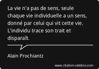 La vie n'a pas de sens, seule chaque vie individuelle a un sens, donné par celui qui vit cette vie. L'individu trace son trait et disparaît.