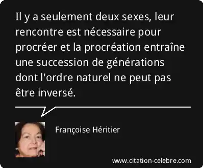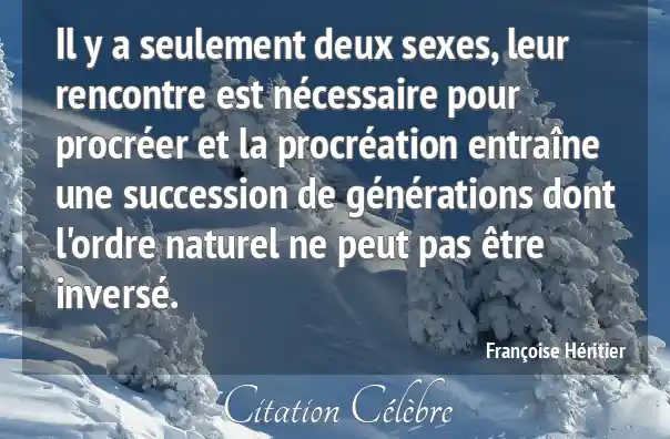 Il y a seulement deux sexes, leur rencontre est nécessaire pour procréer et la procréation entraîne une succession de générations dont l'ordre naturel ne peut pas être inversé.