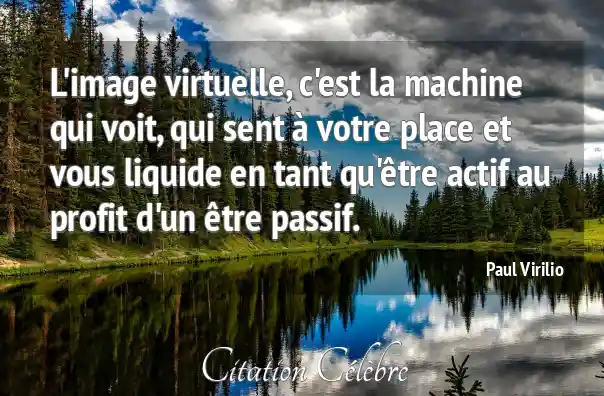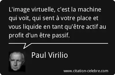 L'image virtuelle, c'est la machine qui voit, qui sent à votre place et vous liquide en tant qu'être actif au profit d'un être passif.