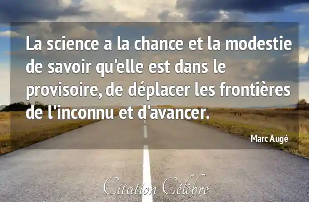 La science a la chance et la modestie de savoir qu'elle est dans le provisoire, de déplacer les frontières de l'inconnu et d'avancer.