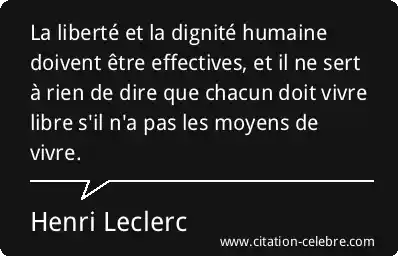 La liberté et la dignité humaine doivent être effectives, et il ne sert à rien de dire que chacun doit vivre libre s'il n'a pas les moyens de vivre.