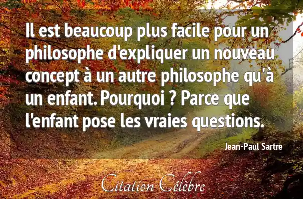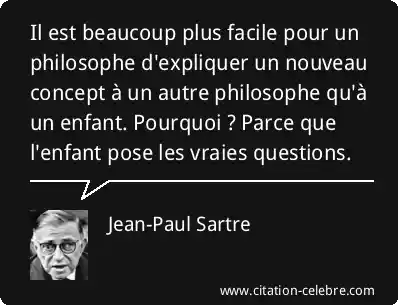 Il est beaucoup plus facile pour un philosophe d'expliquer un nouveau concept à un autre philosophe qu'à un enfant. Pourquoi ? Parce que l'enfant pose les vraies questions.