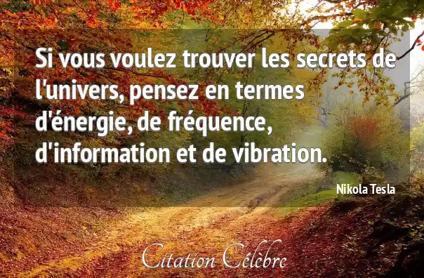 L'origine exacte de cette citation est sujette à débat et n'est pas solidement documentée dans les archives historiques de Nikola Tesla. Elle circule massivement sur Internet et dans les milieux de la métaphysique et du développement personnel, souvent sous une forme légèrement simplifiée (« énergie, fréquence et vibration »), mais une source primaire (lettre, discours, journal) n'a jamais été clairement identifiée. Il est possible qu'il s'agisse d'une synthèse, d'une paraphrase ou d'une interprétation de plusieurs de ses idées sur l'énergie universelle et ses applications technologiques.