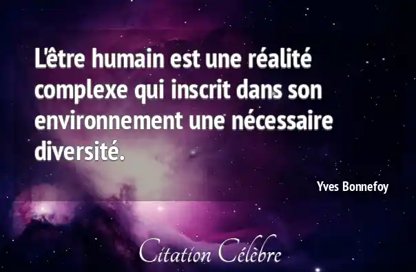 L'être humain est une réalité complexe qui inscrit dans son environnement une nécessaire diversité.