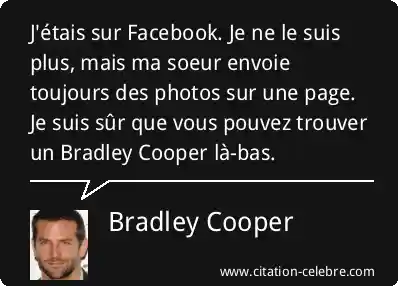 J'étais sur Facebook. Je ne le suis plus, mais ma soeur envoie toujours des photos sur une page. Je suis sûr que vous pouvez trouver un Bradley Cooper là-bas.