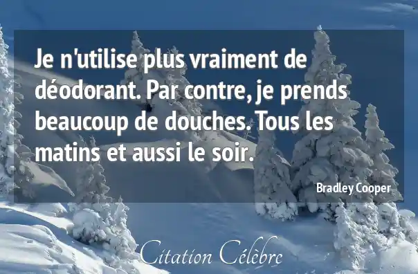 Je n'utilise plus vraiment de déodorant. Par contre, je prends beaucoup de douches. Tous les matins et aussi le soir.