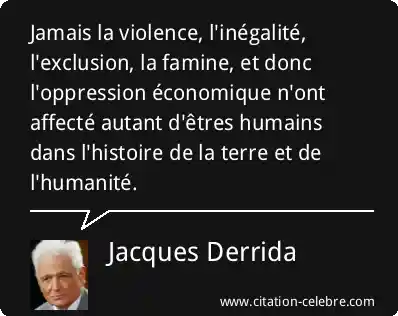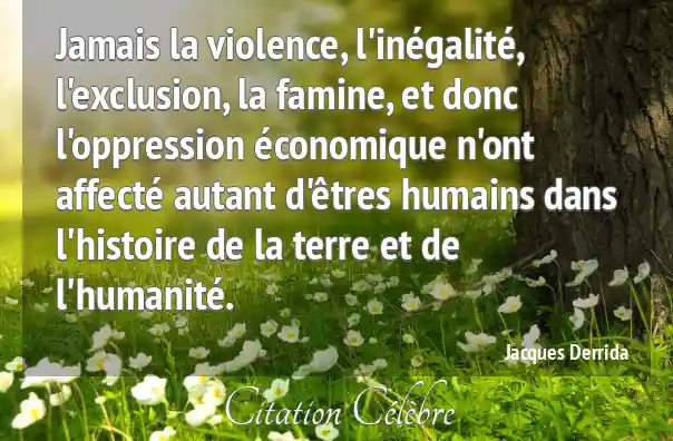 Jamais la violence, l'inégalité, l'exclusion, la famine, et donc l'oppression économique n'ont affecté autant d'êtres humains dans l'histoire de la terre et de l'humanité.