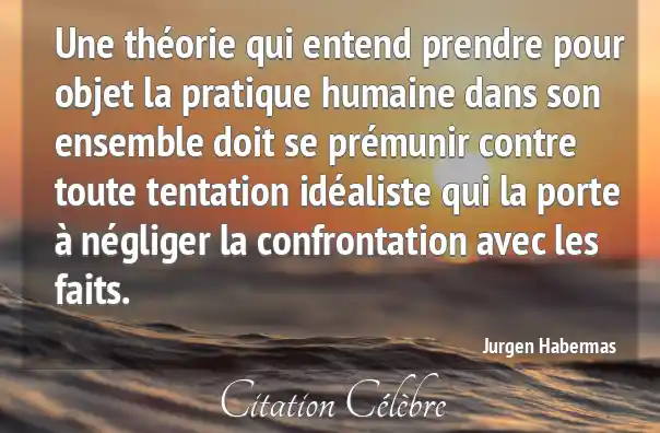 Une théorie qui entend prendre pour objet la pratique humaine dans son ensemble doit se prémunir contre toute tentation idéaliste qui la porte à négliger la confrontation avec les faits.