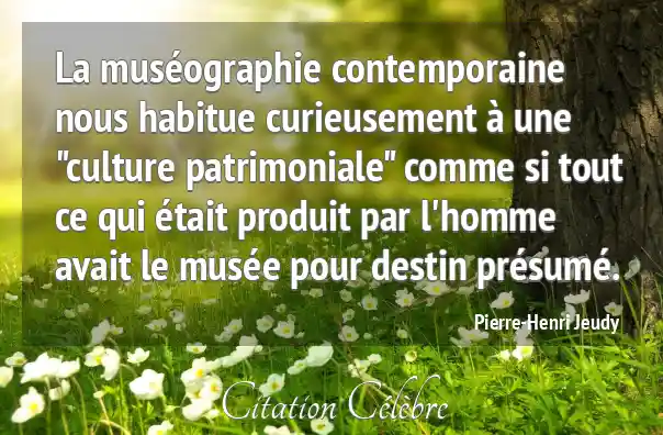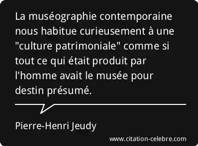La muséographie contemporaine nous habitue curieusement à une "culture patrimoniale" comme si tout ce qui était produit par l'homme avait le musée pour destin présumé.