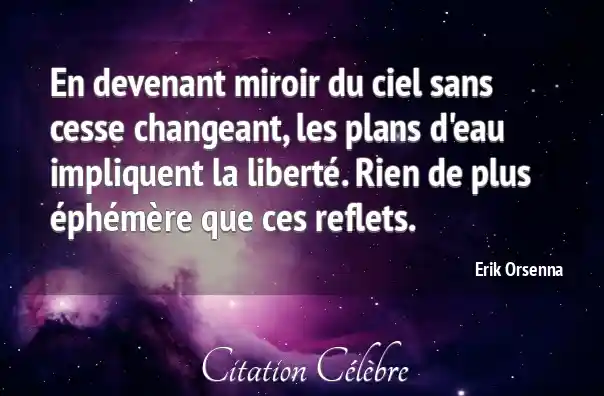En devenant miroir du ciel sans cesse changeant, les plans d'eau impliquent la liberté. Rien de plus éphémère que ces reflets.