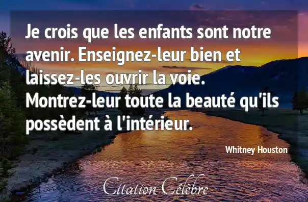 Je crois que les enfants sont notre avenir. Enseignez-leur bien et laissez-les ouvrir la voie. Montrez-leur toute la beauté qu'ils possèdent à l'intérieur.