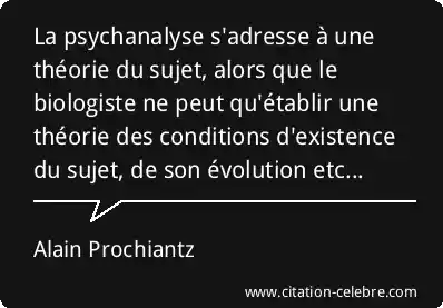 La psychanalyse s'adresse à une théorie du sujet, alors que le biologiste ne peut qu'établir une théorie des conditions d'existence du sujet, de son évolution etc...