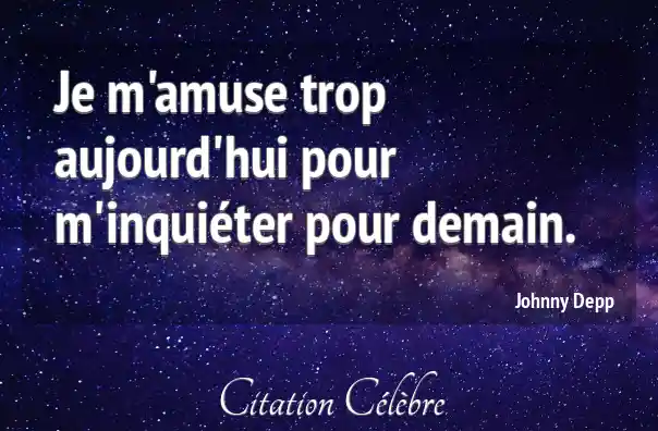 Je m'amuse trop aujourd'hui pour m'inquiéter pour demain.