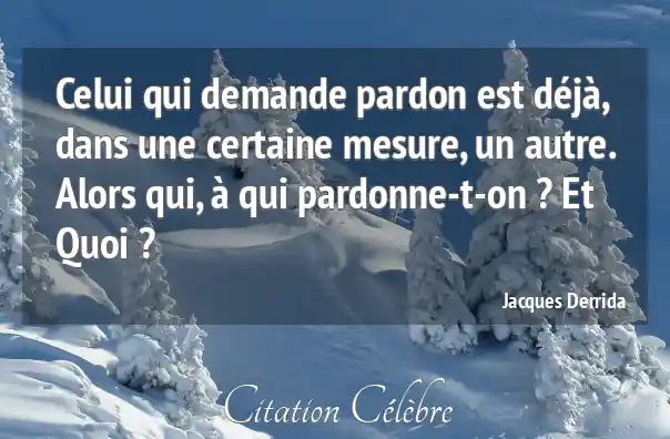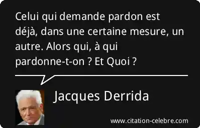 Celui qui demande pardon est déjà, dans une certaine mesure, un autre. Alors qui, à qui pardonne-t-on ? Et Quoi ?