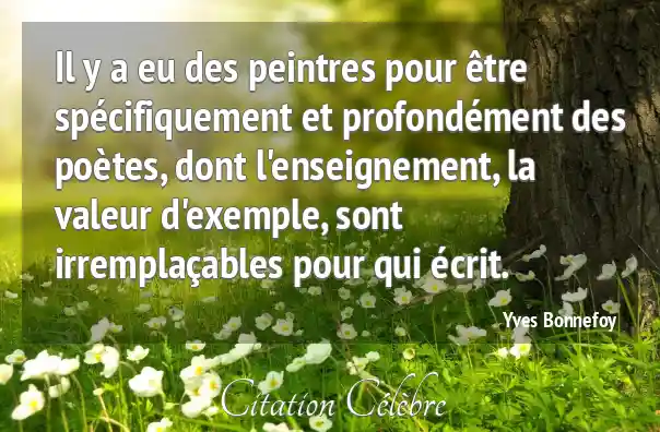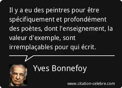 Il y a eu des peintres pour être spécifiquement et profondément des poètes, dont l'enseignement, la valeur d'exemple, sont irremplaçables pour qui écrit.