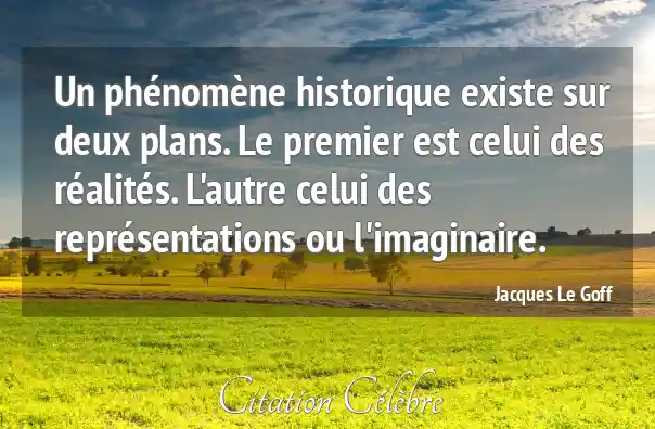 Un phénomène historique existe sur deux plans. Le premier est celui des réalités. L'autre celui des représentations ou l'imaginaire.