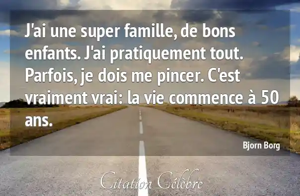 J'ai une super famille, de bons enfants. J'ai pratiquement tout. Parfois, je dois me pincer. C'est vraiment vrai: la vie commence à 50 ans.