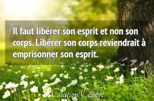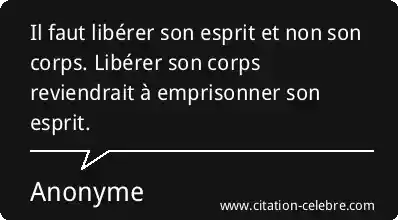 Il faut libérer son esprit et non son corps. Libérer son corps reviendrait à emprisonner son esprit.