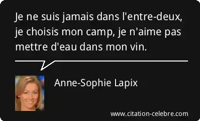 Je ne suis jamais dans l'entre-deux, je choisis mon camp, je n'aime pas mettre d'eau dans mon vin.