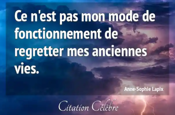 Ce n'est pas mon mode de fonctionnement de regretter mes anciennes vies.
