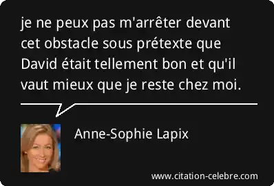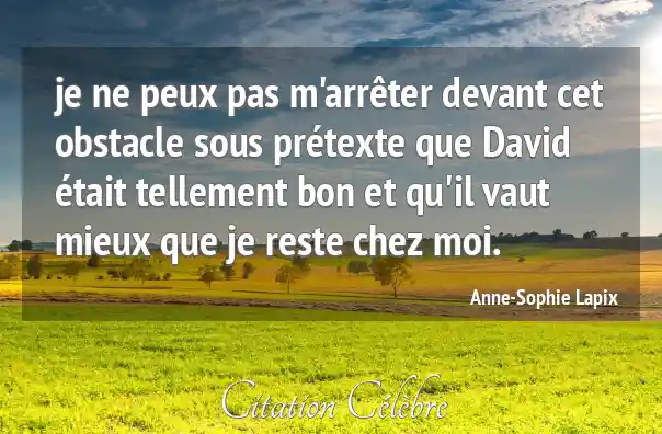 je ne peux pas m'arrêter devant cet obstacle sous prétexte que David était tellement bon et qu'il vaut mieux que je reste chez moi.