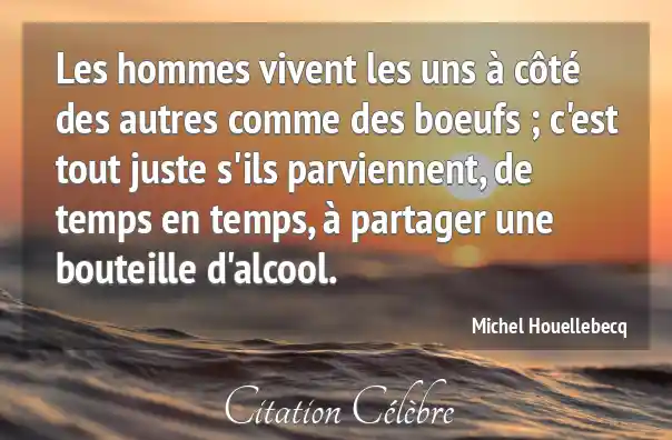 Les hommes vivent les uns à côté des autres comme des boeufs ; c'est tout juste s'ils parviennent, de temps en temps, à partager une bouteille d'alcool.