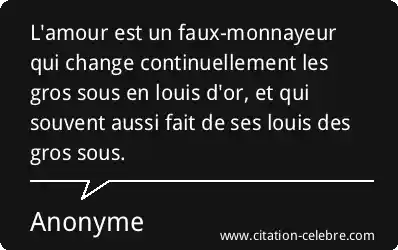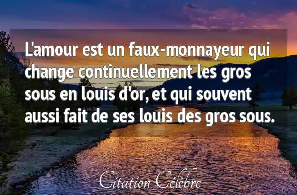 L'amour est un faux-monnayeur qui change continuellement les gros sous en louis d'or, et qui souvent aussi fait de ses louis des gros sous.