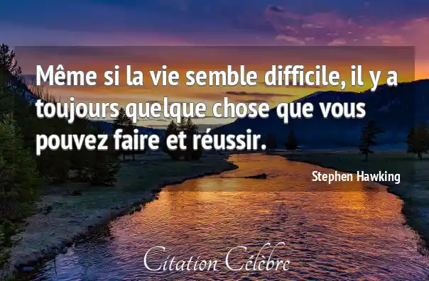 Même si la vie semble difficile, il y a toujours quelque chose que vous pouvez faire et réussir.