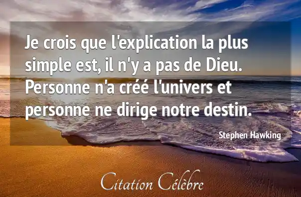 Je crois que l'explication la plus simple est, il n'y a pas de Dieu. Personne n'a créé l'univers et personne ne dirige notre destin.