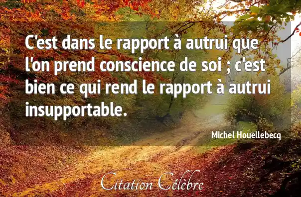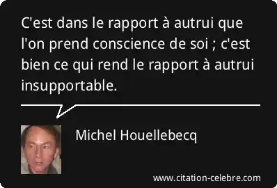 C'est dans le rapport à autrui que l'on prend conscience de soi ; c'est bien ce qui rend le rapport à autrui insupportable.