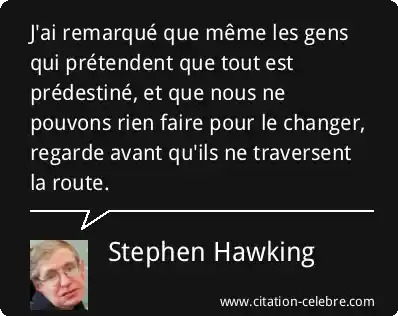 J'ai remarqué que même les gens qui prétendent que tout est prédestiné, et que nous ne pouvons rien faire pour le changer, regarde avant qu'ils ne traversent la route.