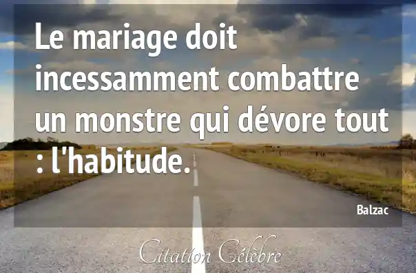 Le mariage doit incessamment combattre un monstre qui dévore tout : l'habitude.