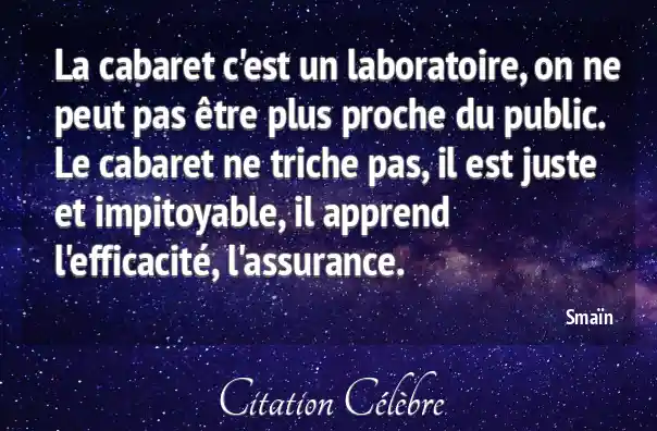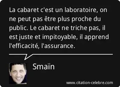La cabaret c'est un laboratoire, on ne peut pas être plus proche du public. Le cabaret ne triche pas, il est juste et impitoyable, il apprend l'efficacité, l'assurance.