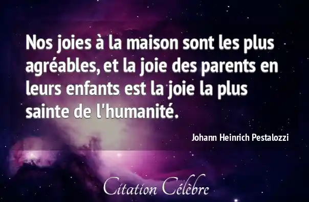 Nos joies à la maison sont les plus agréables, et la joie des parents en leurs enfants est la joie la plus sainte de l'humanité.