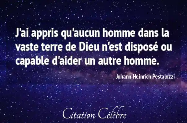 J'ai appris qu'aucun homme dans la vaste terre de Dieu n'est disposé ou capable d'aider un autre homme.