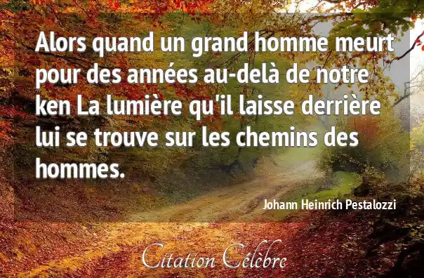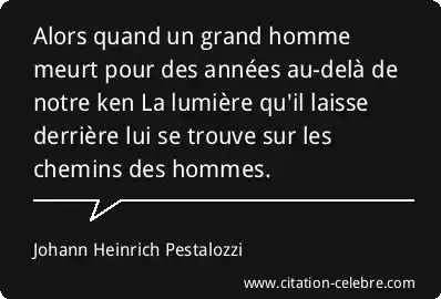 Alors quand un grand homme meurt pour des années au-delà de notre ken La lumière qu'il laisse derrière lui se trouve sur les chemins des hommes.